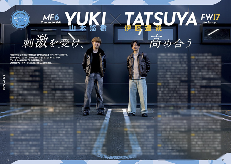今回の対談企画は山本悠樹選手と伊藤達哉選手のクロストーク前編です。同い年ということもあってピッチ内外で話をすることが多いという2人。プレースタイルは違えども2人の武器である決定的なプレーでチームを引っ張ってもらいたいですね。