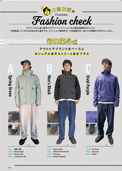 クラブハウスに通う選手のプライベートファッションを大関友翔選手がチェック! 今回登場してくれたのは谷口栄斗選手です。ファッション勉強中という大関選手は一体どんな評価をするのでしょうか。