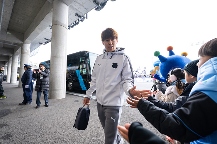 百年構想リーグでの国立開催を記念した特別なネーム&ナンバー圧着を、MUFGスタジアム(国立競技場)のAOYAMAホール場外で実施。