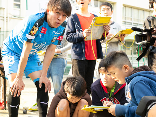 2007年から川崎市内の各小学校に毎年配布され、算数を楽しみながら学べる「川崎フロンターレ算数ドリル」と、フロンターレの選手たちと一緒に身体を動かしてドリルの問題を一緒に解く「実践学習」を行っています。