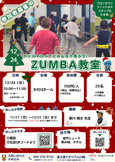 12/24(水)「クリスマスイブにみんなで踊ろう。ZUMBA教室」開催のお知らせ