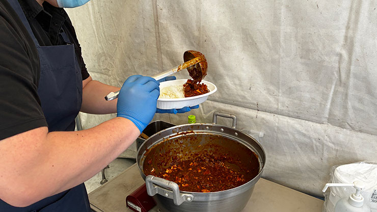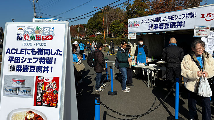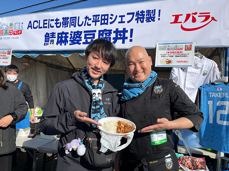 続いて、タイム缶詰さんとエバラ食品「プチッと中華 麻婆豆腐 中辛」を使用した、平田シェフ特製「鯖麻婆豆腐丼」!! ACLE にも帯同した平田シェフが作った、この日限定のスペシャルメニューがU等々力で提供されました。
