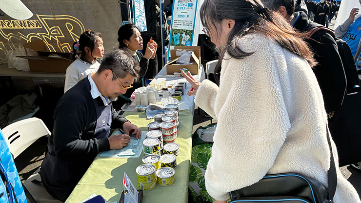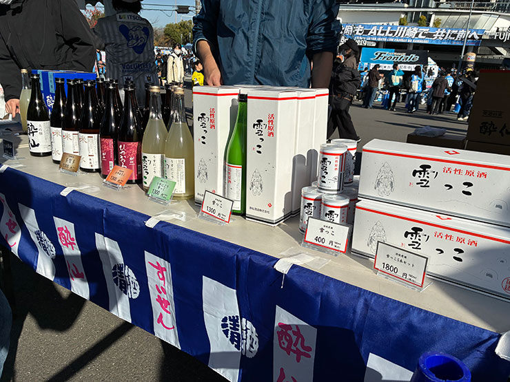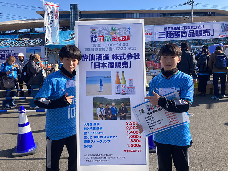 酔仙酒造さんは今回、陸前高田市に誕生した田んぼ「ふろん田」で収穫されたお米を使用して造られた川崎フロンターレと酔仙酒造さんのコラボ商品「青椿」を販売いただきました。