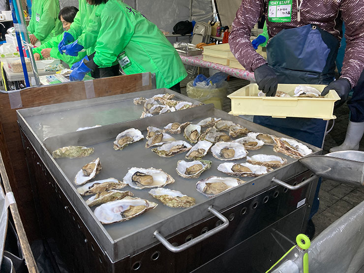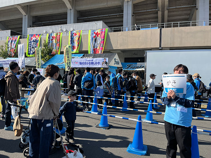 こちらも毎年大人気の大和田家の牡蠣ですが、今回もイベント開始直後から大行列ができみなさん出来立ての牡蠣を求め並んでいました!! そして食べてみると並んだ甲斐があったといいながら美味しそうに食べていました!!