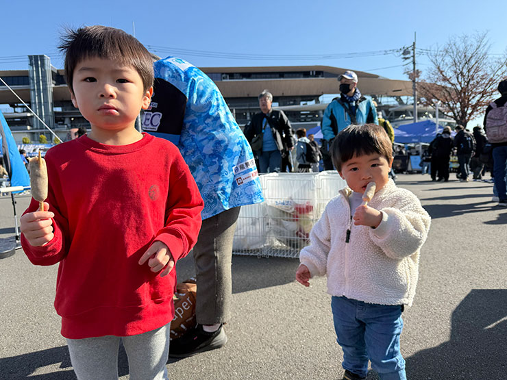 焼きたてでジューシーなみそフランクに子供たちもかぶりついていました。