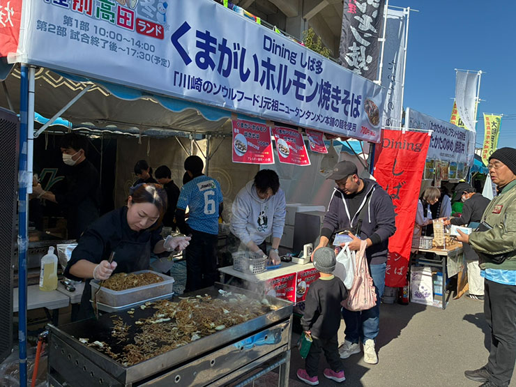 陸前高田の名物「くまがいホルモン」と川崎のソウルフード「元祖ニュータンタンメン本舗」の自社工場の焼きそばのコラボということで、ブースは大行列!!