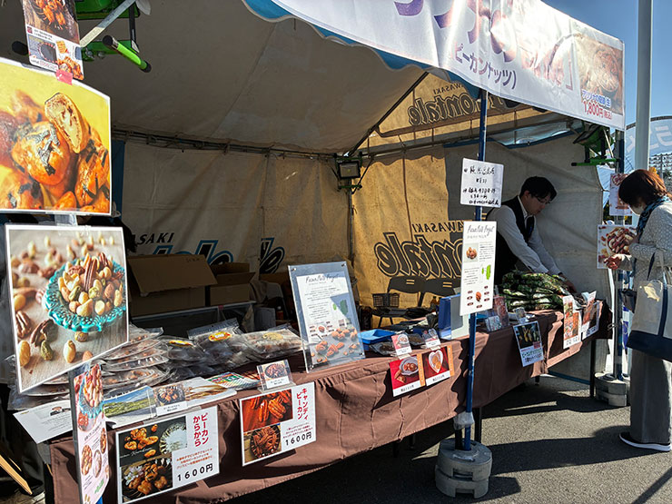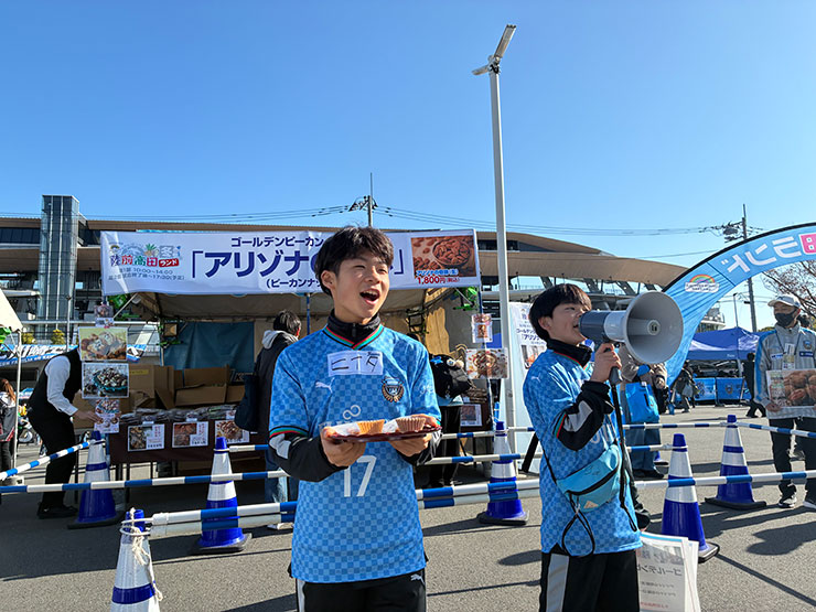 創業90周年を迎えたゴールデンピーカンさんでは様々な種類のピーカンナッツがあり、なかでも陸前高田ランドでは初めての販売となった創業90周年を記念したピーカンクッキー が美味しそうでした! ほかにも公式戦前にもかかわらず手伝いに駆けつけてくれたU-13生田の選手たちがかなりの熱量でおススメしてくれていたチョコレートのピーカンクッキーを購入してくれていた方が多い印象でした。