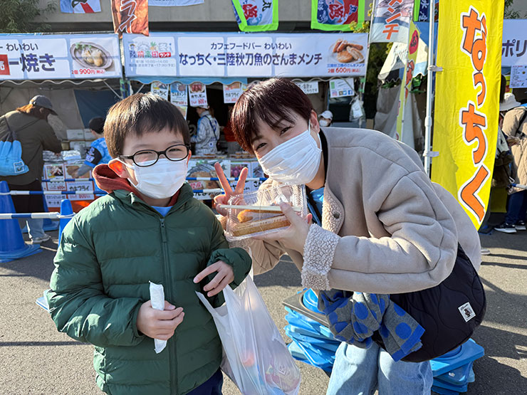 他にも、ホヤの天ぷらやカキフライなど、ほとんどの方が複数パックをお買い上げ。「さんまメンチが美味しそうで!」とお買い上げいただいた方もいらっしゃいました。写真を見ているだけでお腹が空きますね。