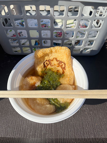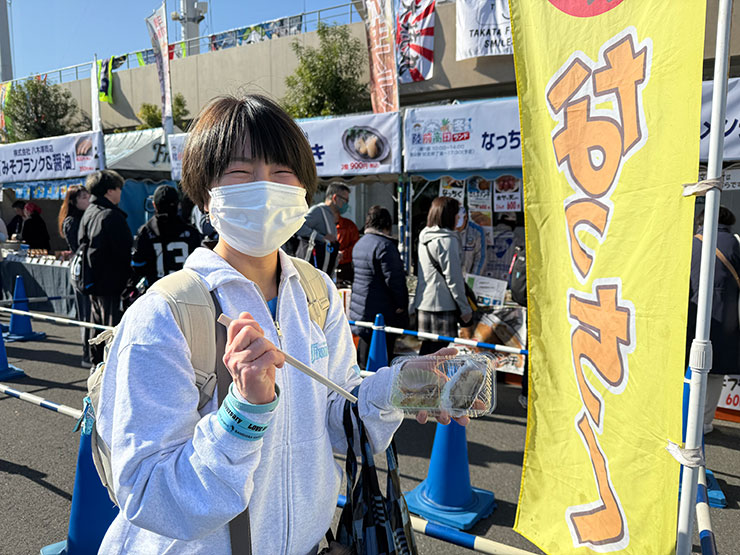 ちくわの中に納豆を詰めてフライしたオリジナルメニューの「なっちく」はこの日も大人気でした。またカキのバター焼きも大人気で、なんと第1部で完売しました。