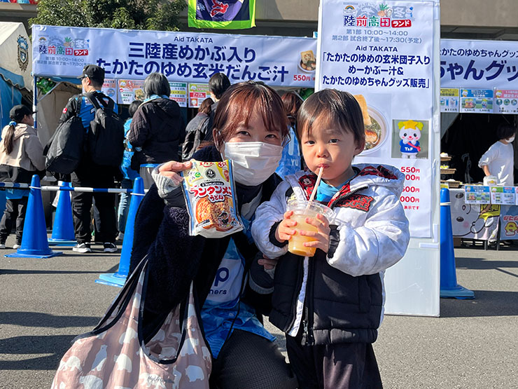 みんなのゆめちゃんハウス「ゆめちゃんのめかぶ汁 ~たかたのゆめの玄米だんごと三陸産めかぶのコンビプレー~」では、温かいメニューを求めて立ち寄られる方が多く、陸前高田産りんごと北限のゆずを使用したミックスジュースも好評でした!!