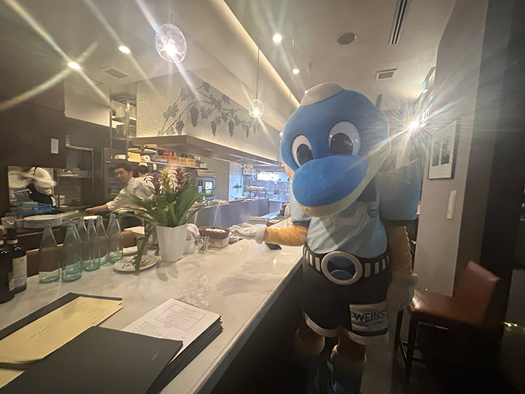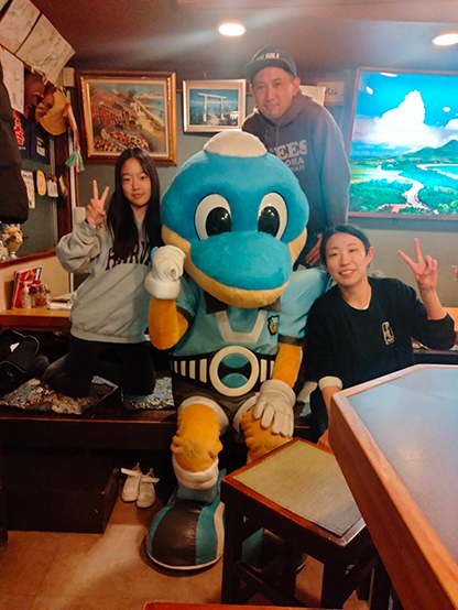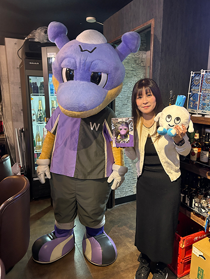 Dining&Bar 繋來さんではワルンタをご指名いただきました。店内には昨年スタジアムで配布したワルンタフィギュアを発見! 大切に飾ってくださっていました。