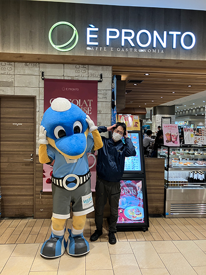 温かくて楽しい雰囲気の一番街。ふろん太も思わずテンションが上がっていました! スタッフの皆さまと交流して、最後は一番街入口で写真をパシャリ。「今度は食べに来ます!」と伝えてお店を後にしました!
