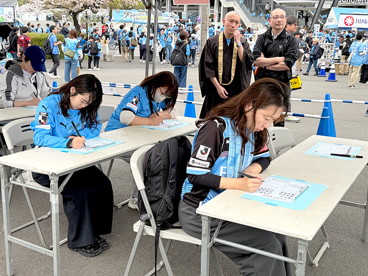 Jリーグでは、おそらくフロンターレだけ(!?)であろう写経体験。