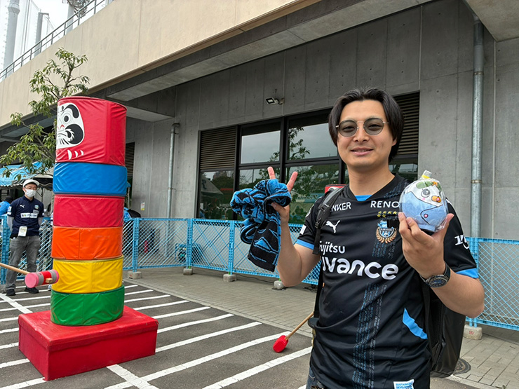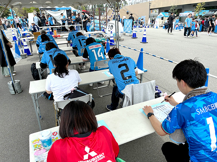 景品獲得を目指して、フロンターレサポーターの方はもちろん、浦和レッズサポーターの方にも多くご参加いただきました!