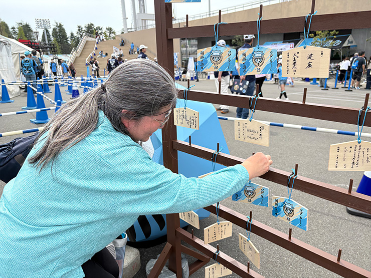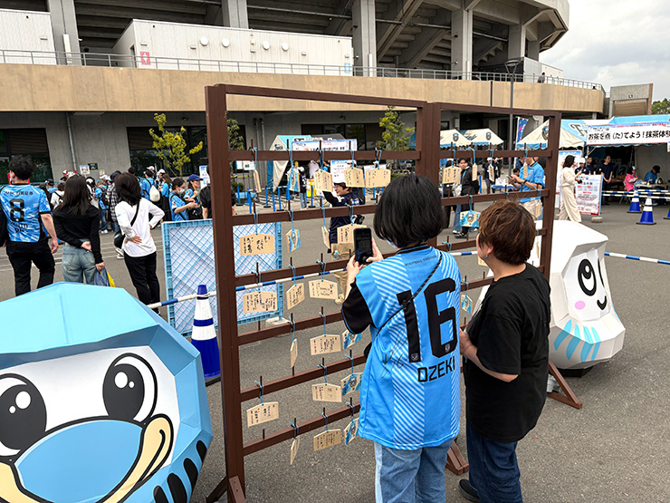 ブースにお立ち寄りいただいた方々は、フロンターレの勝利、健康祈願など、それぞれの願いを書いていましたよ。