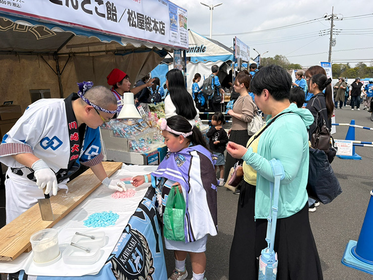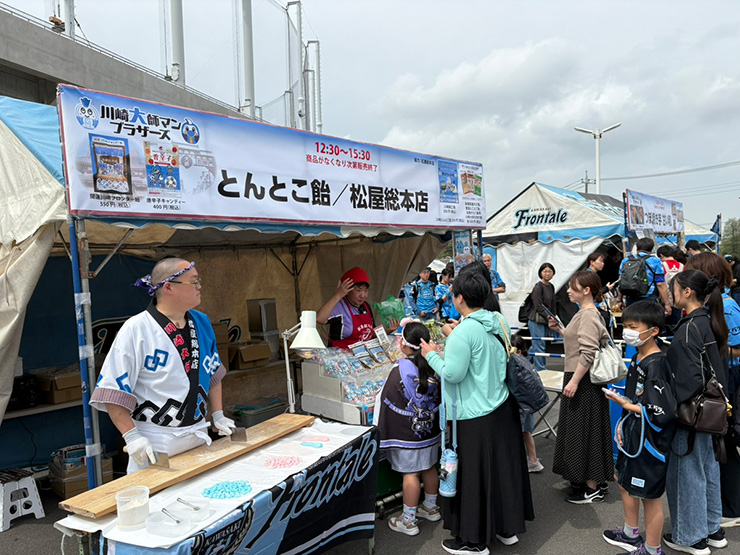 川崎大師名物としておなじみの「とんとこ飴」が、今年も川崎大師マンブラザーズのイベントエリアに登場!