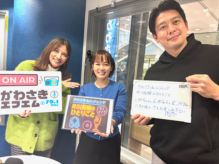 そんななか、フロンターレFOB会メンバーである、井川祐輔さんがかわさきFMで担当されている番組『かわさきde レジェンド 井川祐輔のひとりごと』(毎週火曜日AM9:10~)に、今週のゲストとして出演させていただきました! 井川さんと、番組パーソナリティの高梨由美さんと3人で約1時間のトークだったのですが、スタジアムアナウンス風にコールさせていただいたり、井川さんに現役当時のシーズンオフの様子を聞いてみたり、今後のフロンターレへの希望と展望についてお話したりと...あっという間に終わってしまいました! 時間が足りなかったので、今度はお二人に「#ラブフロ」に来てもらってフロンターレ話の続きを伺いたいなと思います! 井川さんの番組は「#ラブフロ」の火曜日の再放送の後の放送なので、まだ聞いたことがない方は、ぜひ聞いてみてください!