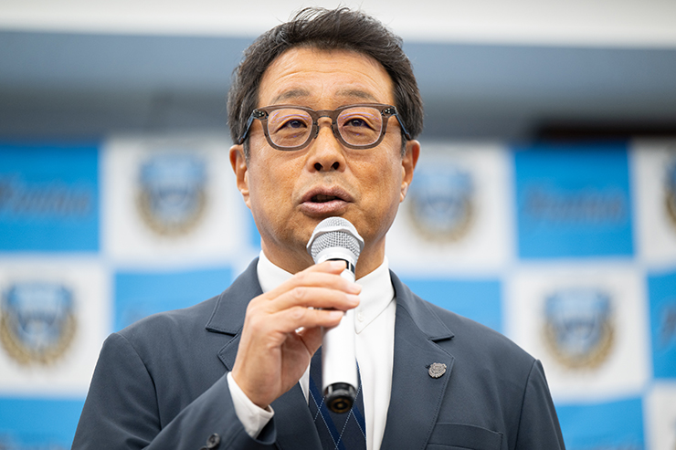 はじめに、竹内弘明強化本部長が今年の選手編成や新加入選手の特徴を語り、長谷部監督は今シーズンに懸ける思いを力強い言葉で紡ぎました。