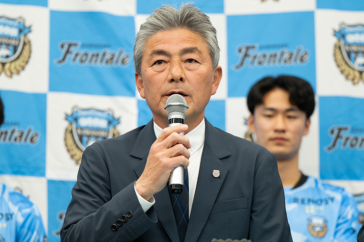 今回は会場の都合上、メディア向けの開催となりました。「あれ? 今年は演奏や寸劇はないのか」そう思われる方も多かったと思います。安心してください。例年「音楽のまち・かわさき」とスポーツの融合イベントとして実施している「新体制発表会見」については、2026/27シーズン開幕前の2026年6~7月に開催を予定しておりますので、ぜひご期待ください!
