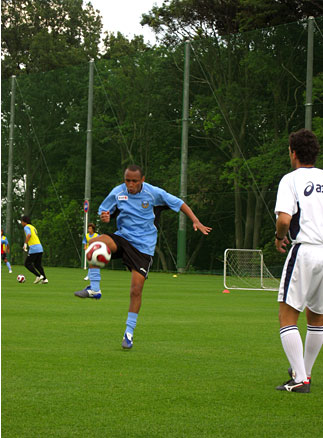 トレーニングを担当しているマルセロコーチは「来日してから毎日フィジカルメニューをきっちりこなしているよ。ブラジルのフィジオセラピストと、ブラジルでこなしてきたトレーニングとズレがないように、上手く調整しながらトレーニングプログラムを組んでいます。日本に来てから1週間、きっちりトレーニングをこなしているので、相当きついと思う。今週、ある程度こなした上で、復帰のメドも見えてくると思います。あせらずじっくり準備して早くピッチでプレーさせてあげたいね」と話してくれました。