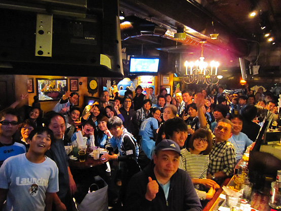 フロンターレの試合は欠かさず放映しているHUB川崎店での年に1度の大イベントということでHP告知を開始してすぐに席の予約はいっぱいになってしまい…今年も予約のお電話を頂いたのにも関わらずお断りさせて頂いた方もいらっしゃり、店長も「申し訳ありません。」とおっしゃっていました。
