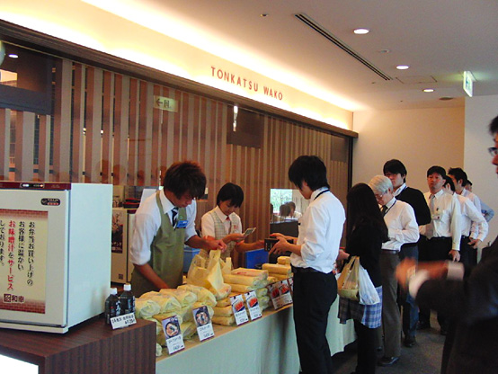 とんかつ和幸さんでのお仕事は、開店準備から始まり、朝礼、そしてご来店下さったお客様にオーダーを取り、お料理を提供したりなど様々な業務がありました。どの選手も真面目にしっかりと仕事に励んだため、各店舗の店長さんからお褒めの言葉をいただきました。