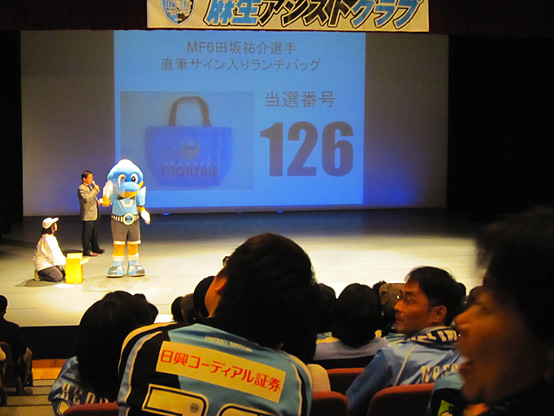 ハーフタイムには、ケンゴやイナといった主力選手のサイン入りフロンターレグッズが当たる大抽選会を実施。特賞の所属選手サイン入りレプリカユニフォームは、小学生の男の子が見事にゲット!お父さんの満面の笑みが印象的でした。