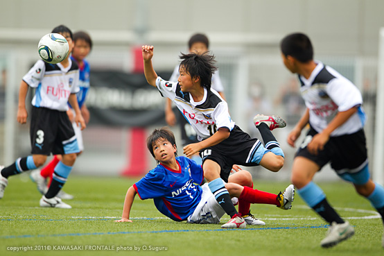 8人制ということもあり、攻守の切り替えの早い白熱した試合が展開されるなか、終了間際にあざみ野FCの大型FWの決勝ゴールで劇的な幕切れ。結果的にはその選手はフロンターレのスクール生。他にも何人かスクール生がいたようで、観戦に来ていたスクールコーチ陣はずいぶん嬉しそうにしていました。