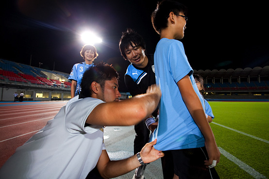 ケンゴ、ユウスケとも最後に参加者の方たちに「これからも僕とフロンターレを応援してくれますか」と聞いてもらい、賛同の返事をもらったところで「それではこれに署名を下さい!」と「キズナの証」の紙を出すと皆さん驚いていました。その後、選手と署名を入れたものを額に入れて後日お渡しすることを伝えるとすごく喜んでくれましたよ。ちゃっかりスタッフのほうで「キズナの証」の中に「シーズンチケットを買い続けます」の一文を入れちゃいましたが皆さん快く署名してくれました!