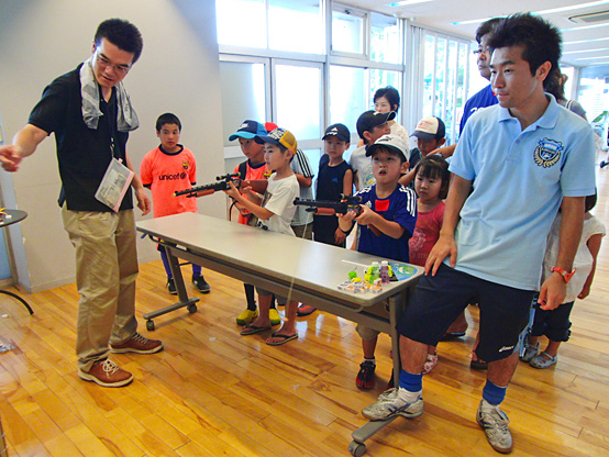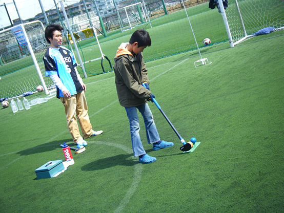 続いて「ホールイングラウンド·ゴルフ」。グラウンド·ゴルフとは全国で愛好者150万人の、特に高齢者に人気のスポーツ。高度な技術が必要なく、子どもから高齢者まで楽しくプレーできるスポーツです。今回はアトラクションとして実施!3つのホールポストを用意して、いくつのホールにホールインワンできるか挑戦します。子どもはもちろん、大人の方も挑戦してみてください!