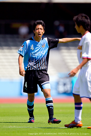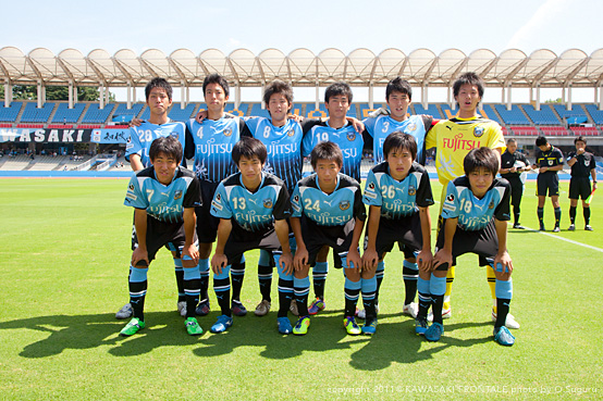 試合はキックオフ直後、どちらのペースともいえない攻防から始まります。しかし先手を取ったのは川崎フロンターレU-18。右サイドMFの26番吉田直也がセンタリングを上げるとそれに反応したのは8番FW大野宰。このシュートはディフェンスに当たってしまいますがこぼれたところを24番MF岡本一輝が押し込み先制!幸先のいい立ち上がりを見せます。その後は徐々にフロンターレがボールを支配し危なげなく前半を終了。そして後半、またも早い時間帯に点をとったのはフロンターレ。19番FW伊藤大夢のパスを受けた岡本が相手ディフェンスを置き去りにすると角度の無いところから逆のサイドネットに突き刺し追加点を奪います。その後両チームとも決定的な場面を数回作りだし、相手のシュートがポストにあたるなど危ない場面もありましたがそのまま試合は終了。次節、首位柏レイソルU-18との試合に弾みをつける快勝を収めました!