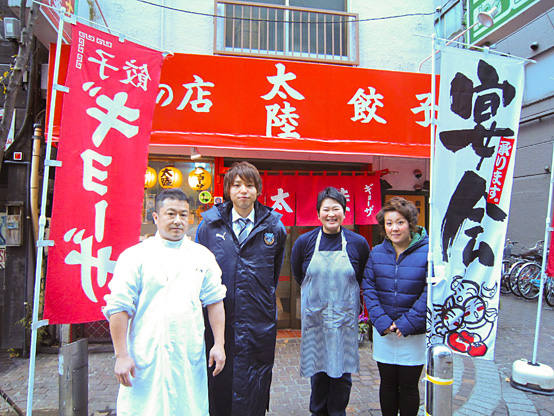 川崎駅周辺は、仲見世通り商店街のサポートショップ、HUB川崎店さん、ファイテン川崎アゼリア店さん、東急ハンズ川崎店さんにユウがお伺いしました。まずは、仲見世通り商店街のサポートショップへご挨拶に。餃子の「太陸」さんでは、ご挨拶にお伺いさせていただいたのに、餃子や肉団子をご馳走になってしまいました。餃子を食べたユウは、「皮がモチモチで、すごくジューシーで美味しいですね。家では絶対作れない味ですよ」と大絶賛。肉団子のふっくらしていて、美味しかったです。太陸さん、本当にご馳走さまでした。ぜひみなさんも、川崎駅に来た際は、食べに行ってみてください。さらに、お好み焼き鉄板料理屋の「SABOTEN」さん、ジュエリーウオッチ武藤さんにもご挨拶させていただき、「今年もたくさん得点してくださいね」、「頑張ってください!」とたくさん応援の言葉を掛けていただきました。ユウも「今年も応援よろしくお願いします!!」と力強く応えていました。