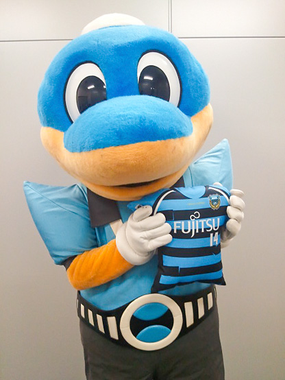 先日、ユニクッションのサンプルが出来上がったので、ケンゴ、タサ、リキの3人のもとにそれを持っていきましたよ。ケンゴは、見た瞬間に「今年も子どもが喜びそう!!」とパパ的観点から感想を教えてくれました。そういえば、昨年も家族が欲しがってるんだと注文を承っていたような…。今年も中村家からのご注文もお待ちしています(笑)そしてタサ。「去年とサイズ一緒だよね?」と確認されたので、同様のサイズなど同じ仕様だと伝えると、「今年と去年のものを並べておいてもカワイイよね、きっと」。そうです!!同様のサイズで作っているので、昨年モデルと並べて置けば、お部屋にフロンターレっぽく彩りかつ歴史も感じられるインテリアになること間違いなしです!!また、何個も一緒に並べると手をつないでるような感じになるところも、このクッションのカワイイポイントですよ。それからリキ。「ユニフォーム型って、こうしたくなるよね。」.と、クッションを首元にあてて、あたかもユニを着てるかのようにポーズをとってくれました。お約束のショットありがとうございます(笑)