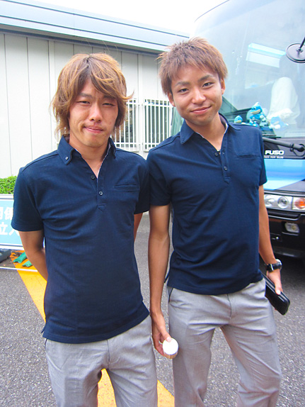 今年の夏服はネイビーのポロシャツにグレーのコットンパンツ。着心地も良いようで、見た目もラフ過ぎず、硬過ぎず素晴らしいバランスです。飛行機・電車を利用して移動する夏場はこちらを着用し、アウェイに挑みます。選手もそうですが、監督、コーチングスタッフも着用しております。選手によっては靴が黒だったり、白のスニーカーだったりと色々。田坂祐介選手は「今日は白っぽい靴がなくて黒だけど、夏っぽくて白のほうがいいかも」と話していました。シーンや気分によって靴を変えるのもありですね。