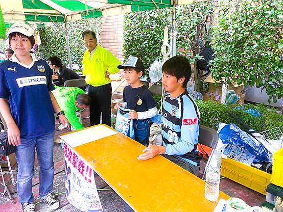そして今年は選手のサイン会もありました。地元桐光学園高校出身のDF22福森晃斗選手です。朝10時30分から先着100名様に参加整理券を配ったのですが、本人曰く「50名くらいしか来ないのでは…」との心配をよそに、100枚しっかりと無くなりました!