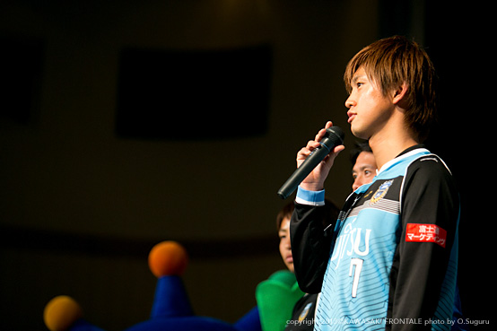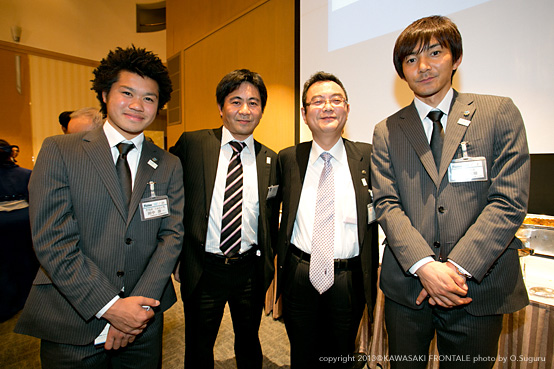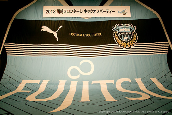 2013シーズンの開幕戦を来週末に控えた一昨日の夜、川崎市内のホテルでシーズン前の恒例となるキックオフパーティーが開催されました。このキックオフパーティーは今シーズンで3回目の開催となりますが、ユニフォームやトレーニングシャツ、アップシャツ、そしてスタジアム内に広告看板をご掲出下さっている「オフィシャルスポンサー」の皆様が対象のパーティーで、今回も約100社200名のスポンサーの皆様がお忙しい中集まって下さいました。チームからは風間監督はもちろん、全選手、コーチングスタッフ全員が出席し、パーティー会場は人の多さと今シーズンへの期待感で熱気に包まれていました。