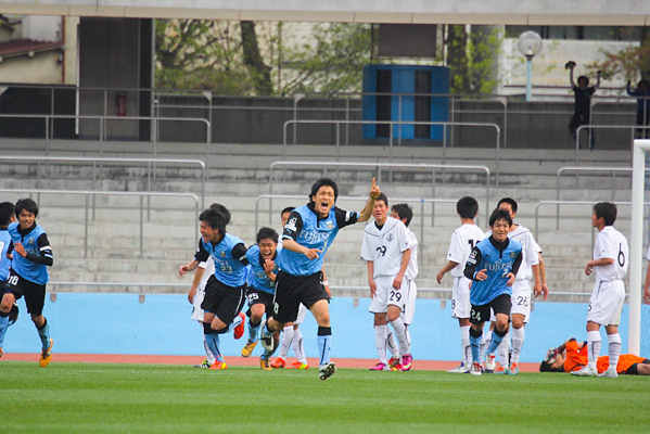 その後も攻勢を見せるフロンターレでしたが、16分に一瞬の隙から前橋育英高校にペナルティーエリアの外から豪快に決められ1-1の同点に追いつかれてしまいます。後半は開始早々に中央突破からピンチを招きますが、GK深谷星太選手の好セーブで逃れると、59分と61分に続けてチャンスを作るものの相手GKの好セーブに阻まれ勝ち越すことが出来ません。