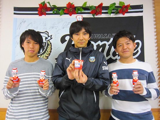 先日、青玄寮で「ヨーグルトパーティー」を開催しました。今回のイベントは、8月からのホームゲーム時からホーム側のローソン売店やフロンターレローソンで販売していた「恵megumiガセリ菌SP株ヨーグルト」についている応募券で当選した皆さんとの企画なんです!! この応募券、5枚1口で応募でき、これのA賞として「青玄寮でのヨーグルトパーティーに参加出来る権利」を用意していました。そもそもですが、実は今シーズンからご協賛いただいている雪印メグミルク株式会社様には、選手たちに「恵megumiガセリ菌SP株ヨーグルト」をご提供いただいているんです。クラブハウスにある冷蔵庫には、このヨーグルトがいっぱい入っています!!