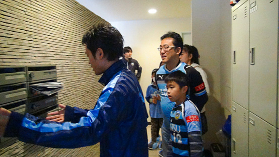 そしてこの日、数ある応募の中から見事、当選された7組の方々は12時に青玄寮に集合。最初に雪印メグミルク株式会社の相沢様ご挨拶をいただき練習終わりの選手たちが到着するまでの間、青玄寮の中をご案内。普段、なかなか入れる場所ではないので皆さん興味津々でスタッフの話を聞いていました。