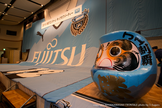 続いて、胸スポンサーとして多大なご支援を頂いている富士通の山本様。なんと、こういったフロンターレのイベントには初登場となりました!! そんな山本社長からは「昨年のフロンターレの試合では、感動・感動・感動! と、たくさんの感動をもらいました。今年は、本当に『優勝』の2文字をいただきたい。今年、富士通は創業80周年を迎えますが、同じ年にアメフトの富士通フロンティア―ズが創部30周年でついに栄光を掴んでいます。これに続く第2弾は、私はフロンターレだと思っています!」と、ありがたいお言葉に続けて「2020年の東京オリンピック。富士通は、大会のゴールドスポンサーになりました。このオリンピックのサッカーの種目には、フロンターレからもたくさんの選手が出てくれることを願っています!」といったお言葉も。