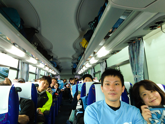 その後もバスは順調に進み、予定よりも早く無事にスタジアムに到着しました。日本平もやはり厳しい寒さでしたが、試合結果は皆さんご存知の通り、2-0の大勝利! 寒さも吹き飛ぶ歓喜の瞬間を一緒に迎えることができました! やはり勝利後は気持ち良〜く帰れますね。