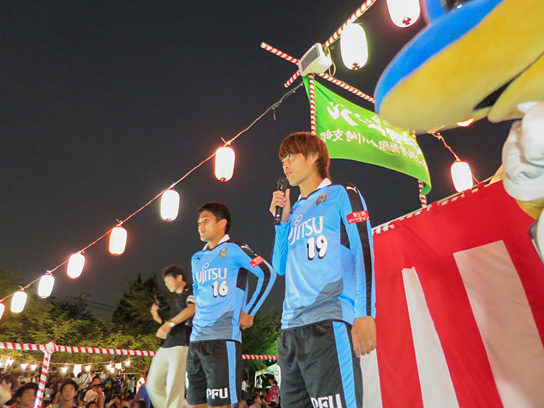今年は天候にも恵まれ18:00にイベントがスタート! 毎年このイベントには選手が出演しているんですが、今年はリョータとケンタロウ! 前日は近くのホテルKSPで行われた選手激励会に続き2日連続のイベント出演となりました。