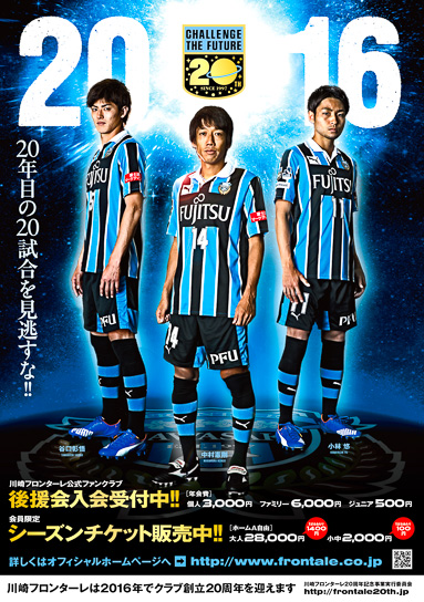 さて、フロンターレは来年クラブ創立20周年。創立時から応援いただいている皆さんはもちろんですが、試合には行けないけどテレビで観戦したり毎試合結果を気にかけてくれる方、最近フロンターレを知ってくれた方、などなど、これまでの年月を、さまざまな形で支えてくれた皆さんのおかげで、晴れて来年20周年を迎えられるのだと思っています。メモリアルイヤーはこれまでの“感謝”を表現したい!! との思いで、20周年特別企画として巷のキャンペーンには負けないひとつのキャンペーンを準備しました! それが…『2016シーズンチケットを買ったら“絶対もらえる”キャンペーン』です!!