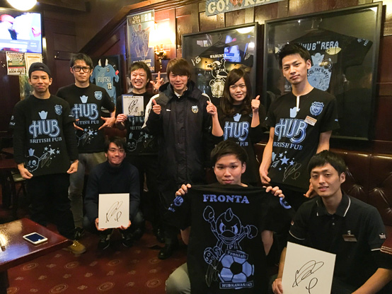 「HUB川崎店」さんでは、迎えてくれたスタッフの皆さんお揃いのTシャツに、ケンタロウが直筆サインのプレゼント。