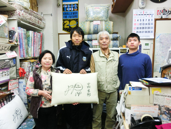 こちらの商店街は、古くからフロンターレを熱く応援いただいて、フロンターレの新人研修も毎年実施しています。今回、新加入のモリとタツヤ選手が参加。