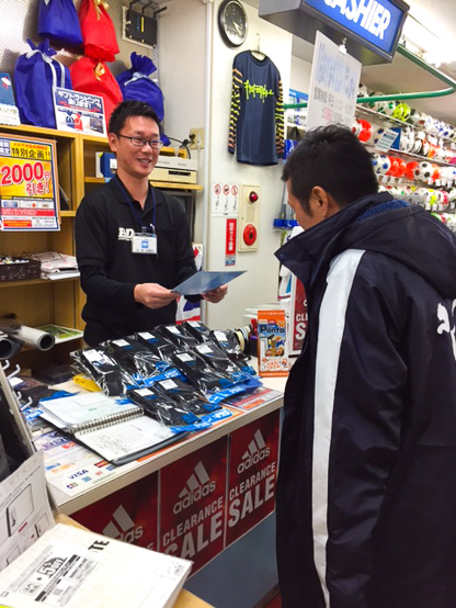 エリア内にある約30店舗のサポショに訪問し、サイン、写真撮影にも丁寧に対応して「フロンターレのためになるなら!」と、なんと、積極的にサポショ営業にも挑戦してくれました!