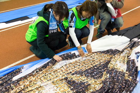 掲出準備を始めるまでに少し空き時間ができたので、参加メンバーの方々は、フォトモザイクエンブレムで自分や知人を探すことに夢中になる時間も(笑)