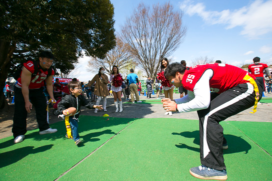 会場となった場外イベント広場「フロンパーク」横の児童遊園では、アメフトの魅力が体感できる数々のアトラクションを展開。