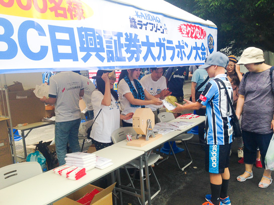 そして児童遊園エリアでは、昨年に引き続きフロンターレのユニフォーム背中スポンサー様、「SMBC日興証券ブース」が登場。