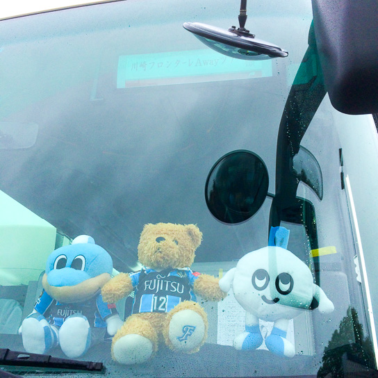 さてバス車内では、アウェイツアー恒例の車内ビンゴで盛り上がり、2016JTBアウェイツアーオリジナルグッズのスリッパに、カスペルスキー様、iTSCOM様ご提供の、大島僚太選手(リョウタ)、中村憲剛選手(ケンゴ)、森谷賢太郎選手(ケンタロウ)のサイン入りTシャツや、かわしん様ご提供の「貯金箱」、ZAMST様からご提供の「足底矯正ソックス」、FUJITSU FIP様からご提供の「タオルマフラー」、トヨペット様からご提供の「スマホスピーカー」など、賞品が盛りだくさん!